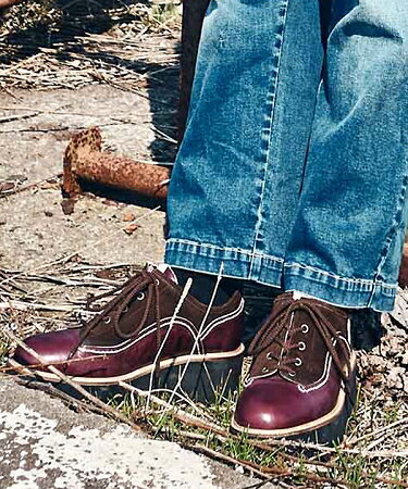手縫いステッチで装飾した外羽式のアッパーはカウレザー、羽にはスウェードを使用。