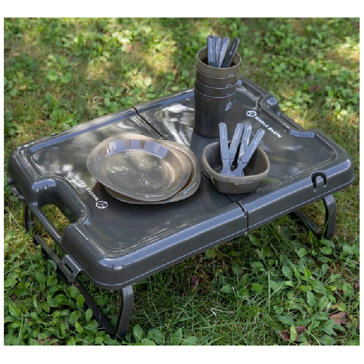 レジャーやピクニックで大活躍! テーブルにもなる食器セット 内容物:プレート、コップ、スプーン、 フォーク、ナイフ 特徴 ・テーブルにもなる食器セット ・レジャーやピクニック、マリンで大活躍 ・テーブルは収納ケースになるので、持ち運び便利 品番:WE2KDJ17 素材: 本体ポリプロピレン 使用時サイズ:(約)58×39×21cm 収納時サイズW38.5×28.5×9.5cm 重量:(約)950g 耐荷重:(約)10kg COLOR:37/オリーブ JANコード:4533776603732 ※掲載商品の仕様、デザイン、生産国、発売時期は 予告なく 変更する場合がありますので、 あらかじめご了承ください。