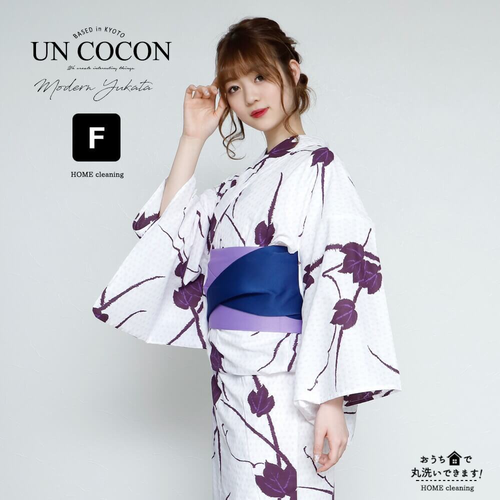 浴衣 レディース 女性浴衣 ゆかた 単品 浴衣単品 レトロ きれいめ オトナ見え 仕立て上がり フリー 葉柄 白 ホワイト パープル 紫 送料無料