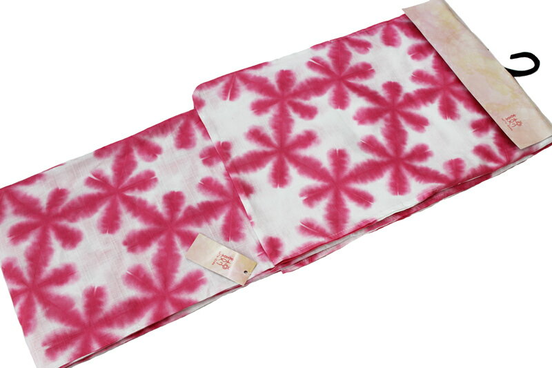 雪花絞り風の綿紅梅生地の綿麻浴衣となります。