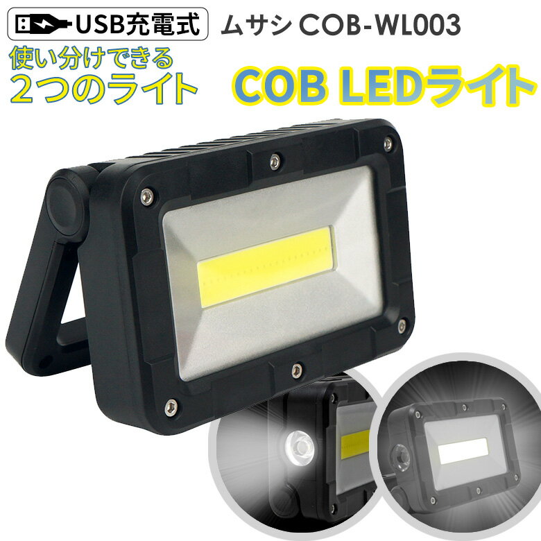 新商品 ムサシ 充電式マルチLEDライト 5W角型 USB充電 コンパクト 携帯ライト アウトドア キャンプ COBライト ランタン 作業灯 現場 防犯ライト スポットライト 照明 スタンド付き マグネット