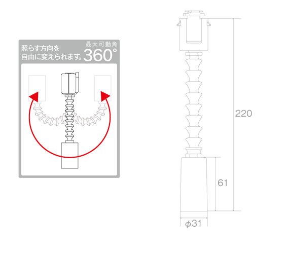 照らしたいものを直接照らすのはもちろん、天井や壁を照らして間接照明としても最適。