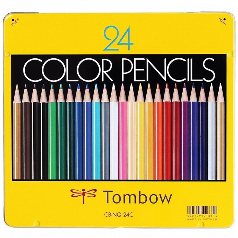 トンボのNQシリーは見事に並んだ鮮やかな色鉛筆の色彩が目印であり、「黄色いケース」でおなじみの缶入りです。