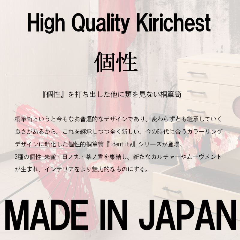 これを継承しつつ全く新しい、今の時代に合うカラーリング・デザインに新化した個性的桐箪笥ライン 『identity』シリーズが登場。